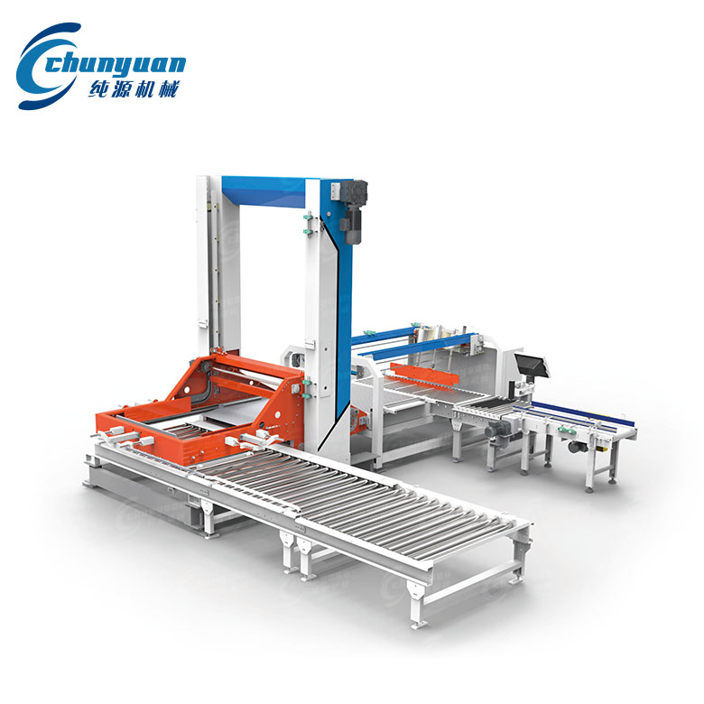 碼垛機適用於紙箱、塑箱、膜包以及桶類等多種類型包裝件的堆疊,主機分為差數皮帶、轉向機構、排箱區、碼箱區、主題升降機構、出垛滾筒等部分,並可選用曾隔板裝置以增加垛層的穩定性,各種工作形式為不同的碼垛而設計,生產速度可達24000-72000BPH。